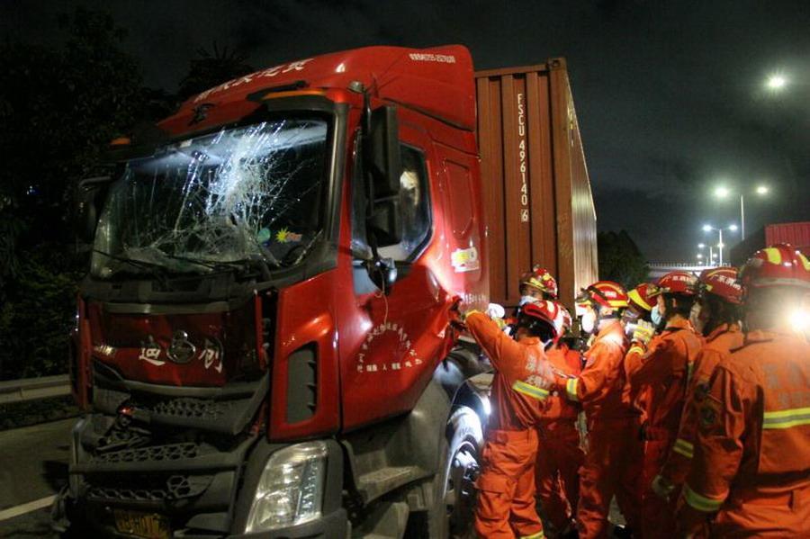 見(jiàn)圳客戶端·深圳新聞網(wǎng)2020年6月17日訊(見(jiàn)圳客戶端、深圳新聞網(wǎng)記者 張喆 通信員 戴沛旭)6月16日4時(shí)16分,位于龍大高速往東莞方向黃江公明出口500米處,兩輛大貨車(chē)在行駛過(guò)程中發(fā)生追尾,后車(chē)司機(jī)被困駕駛室。接警后,光明消防救援站迅速出動(dòng)4車(chē)22名指戰(zhàn)員趕赴現(xiàn)場(chǎng)處置。到達(dá)現(xiàn)場(chǎng)后救援人員第一時(shí)間對(duì)現(xiàn)場(chǎng)拉起警戒,隨后利用破拆工具破開(kāi)車(chē)門(mén)救出被困駕駛員,經(jīng)檢查詢問(wèn)男子身體無(wú)大礙。