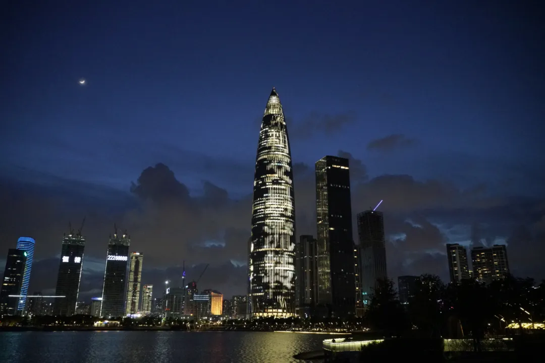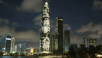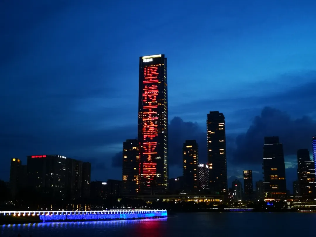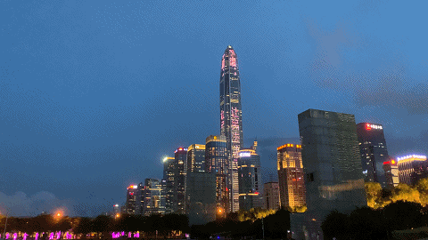 平安國際金融中心、京基100大廈、深圳漢國城市商業(yè)中心、深圳灣1號、中國華潤大廈五座城市地標(biāo)的外立面上,同時(shí)亮起了絢麗的燈光。
