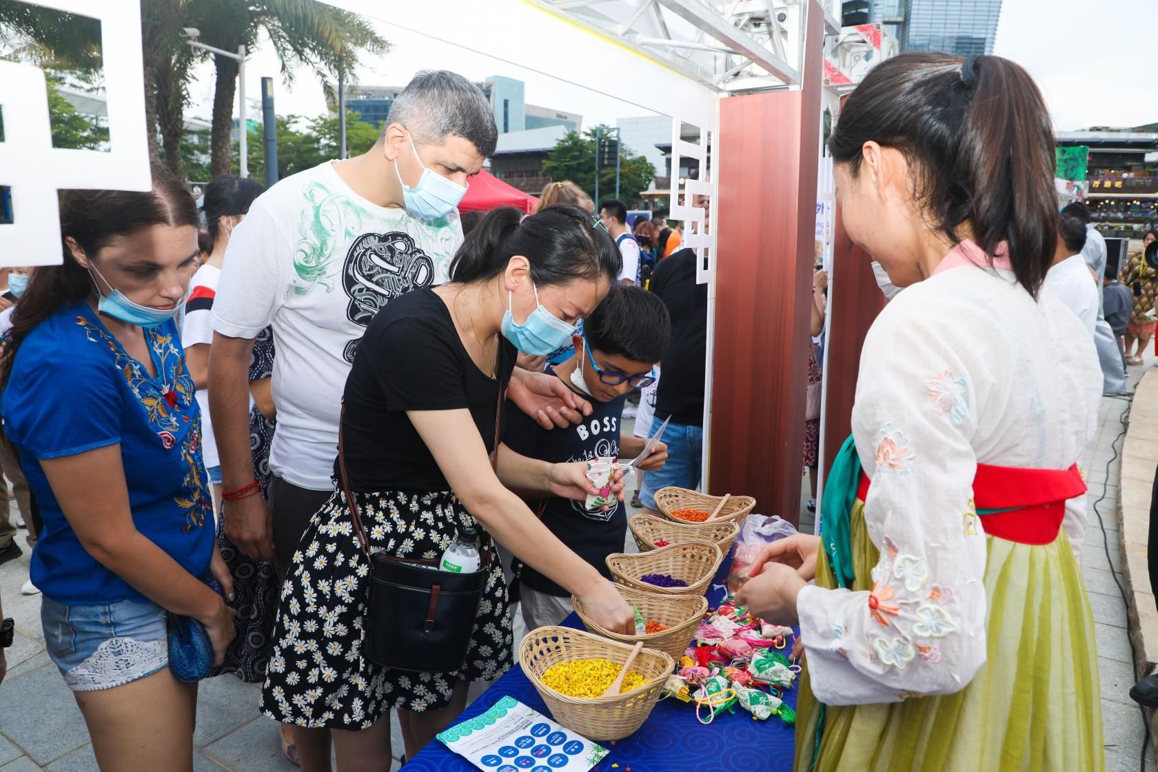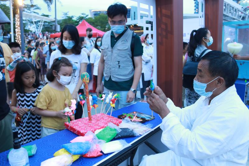 糖畫、捏面人、穿漢服……當(dāng)晚的海上世界廣場熱鬧祥和,約300人次中外居民歡聚一起,互致美好祝福,在感受中國傳統(tǒng)文化當(dāng)中共度端午佳節(jié)。