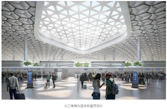 地面公園、主入口廣場以及綠化屋頂以開放、友好的姿態(tài)展現(xiàn)生態(tài)環(huán)保表達建筑的公共屬性。主入口處外立面向上,展露出內(nèi)部的玻璃幕墻,以開放的姿態(tài)迎接旅客的到來。引入“垂直疊放”設(shè)計策略,高效組織口岸出入境及公共交通換乘,整合聯(lián)系城市綠軸與福田口岸無縫連接,致力在區(qū)域核心打造一個開放、綠色與城市緊密聯(lián)系的公共空間。