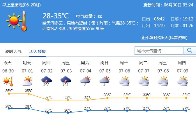 見圳客戶端·深圳新聞網(wǎng)2020年6月30日訊 我市今天晴天間多云,局地有短時(雷)陣雨;氣溫28-35℃;西南風2-3級;相對濕度55%-90%。