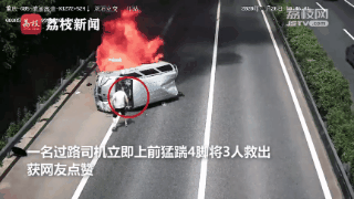 近日,重慶一面包車(chē)高速上突然失控,撞向護(hù)欄側(cè)翻,隨即起火,車(chē)內(nèi)3人被困。一名司機(jī)路過(guò),上去4腳踹碎擋風(fēng)玻璃,助3人脫困。