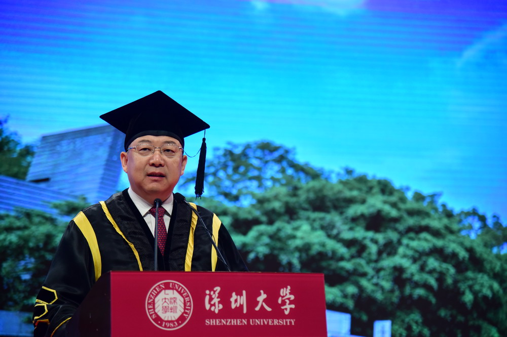 深圳大學(xué)校長(zhǎng)李清泉為博士學(xué)位獲得者頒授學(xué)位