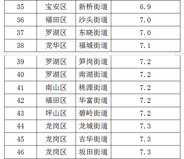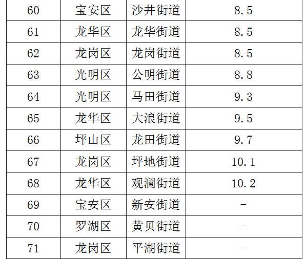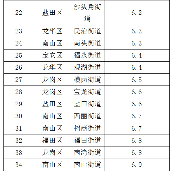 各街道及各區(qū)具體排名見下表。