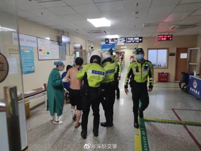 鐵騎一路沿著南坪快速往彩田路行駛,到達(dá)梅林關(guān)的位置后,跟福田交警匯合,采取前面開路后方護(hù)送的方式,花了15分鐘,就將病患護(hù)送到了市中醫(yī)院急診科。