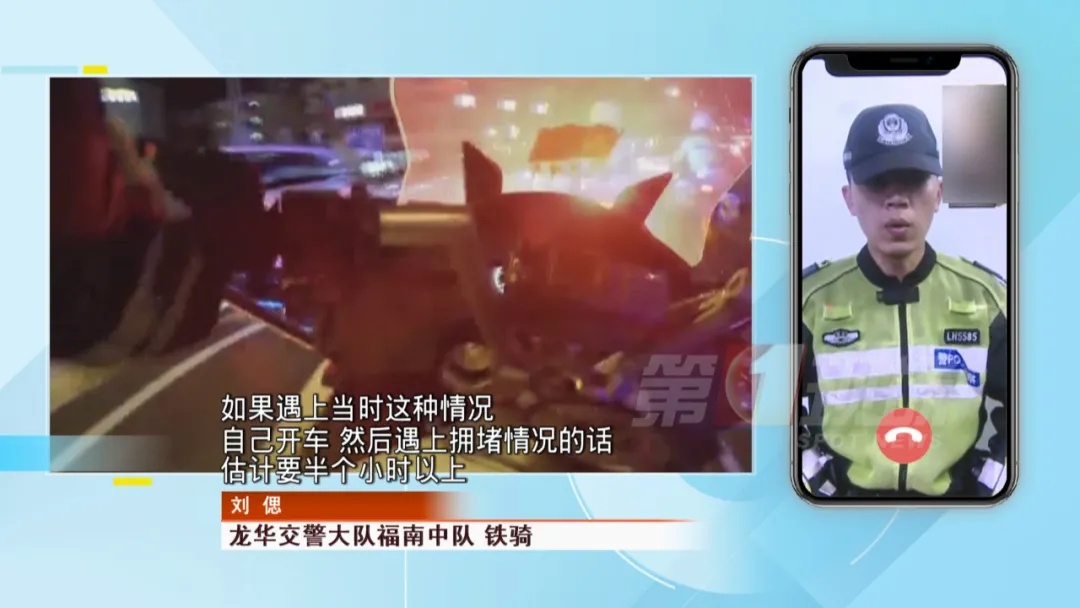 當(dāng)天晚上9點(diǎn),龍華交警福南中隊(duì)的鐵騎在南坪快速接上了一輛出租車,當(dāng)時(shí)車上有一名被蛇咬傷的市民,急需趕往醫(yī)院治療。