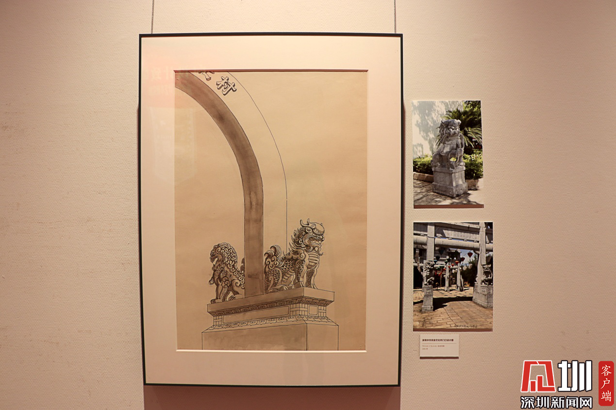 周令釗設(shè)計(jì)手稿——深圳民俗文化村入口門(mén)柱。