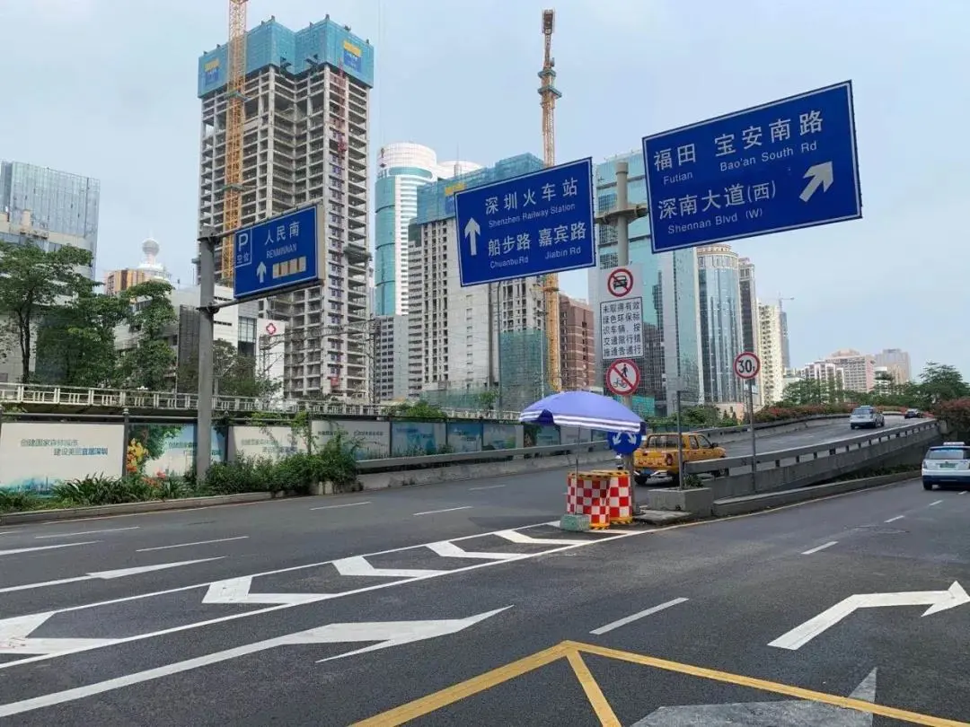 這條神仙“藍(lán)帶”原來就在東門步行街周邊的和平路跨線橋。這個(gè)地方,交通出行量不是一般的大,因?yàn)檫@里有3大商圈鎮(zhèn)著:萬象城商圈、東門商圈、地王商圈。