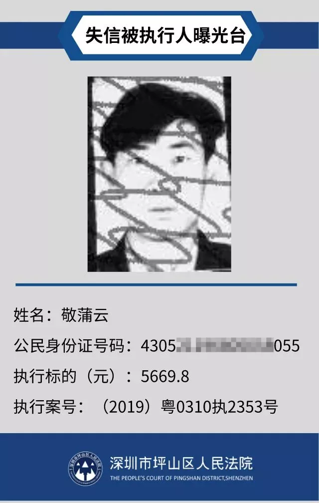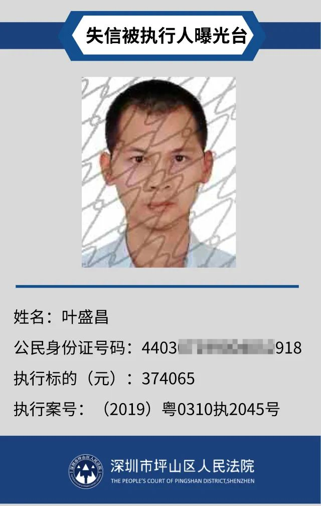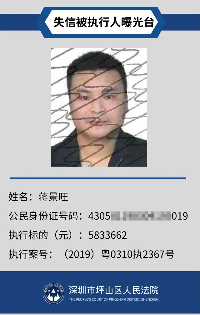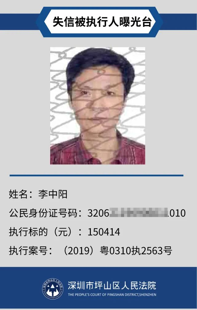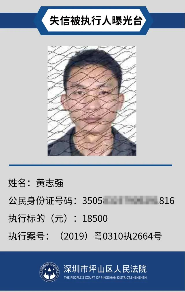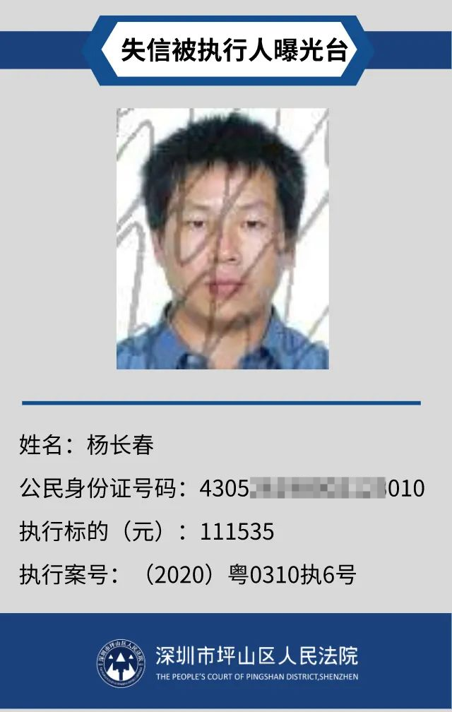 為督促被執(zhí)行人自覺履行生效法律文書確定的義務(wù),推進社會誠信體系建設(shè),深圳市坪山區(qū)人民法院根據(jù)《中華人民共和國民事訴訟法》第二百五十五條、《最高人民法院公布失信被執(zhí)行人名單信息若干規(guī)定》第一條和第七條之規(guī)定,現(xiàn)對31名失信被執(zhí)行人予以公布。名單信息根據(jù)案件結(jié)案情況及時更新,歡迎舉報失信被執(zhí)行人行蹤及財產(chǎn)線索,相關(guān)信息核實請聯(lián)系深圳市坪山區(qū)人民法院執(zhí)行局。