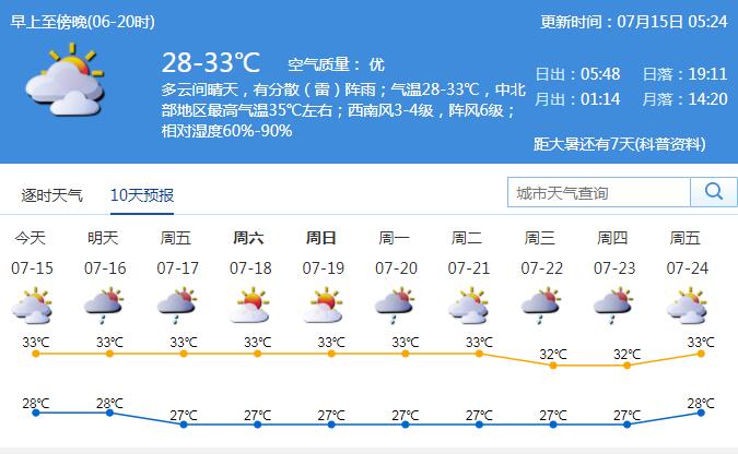 市氣象臺提醒市民注意防暑降溫,并關(guān)注局地短時雷雨的影響。