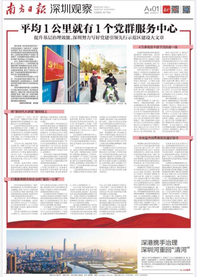 深圳市委組織部負(fù)責(zé)人在接受南方日報記者采訪時表示,深圳將始終圍繞中心、服務(wù)大局,持續(xù)深化城市基層黨建“標(biāo)準(zhǔn)+”模式,進一步提升基層黨組織的組織力和基層治理效能,走出符合超大城市特點和規(guī)律的基層黨建和基層治理新路徑。