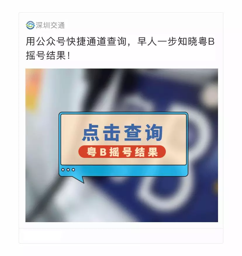 搖號(hào)當(dāng)日,“深圳交通”微信公眾號(hào)會(huì)第一時(shí)間推送公布粵B搖號(hào)結(jié)果的微信文章。