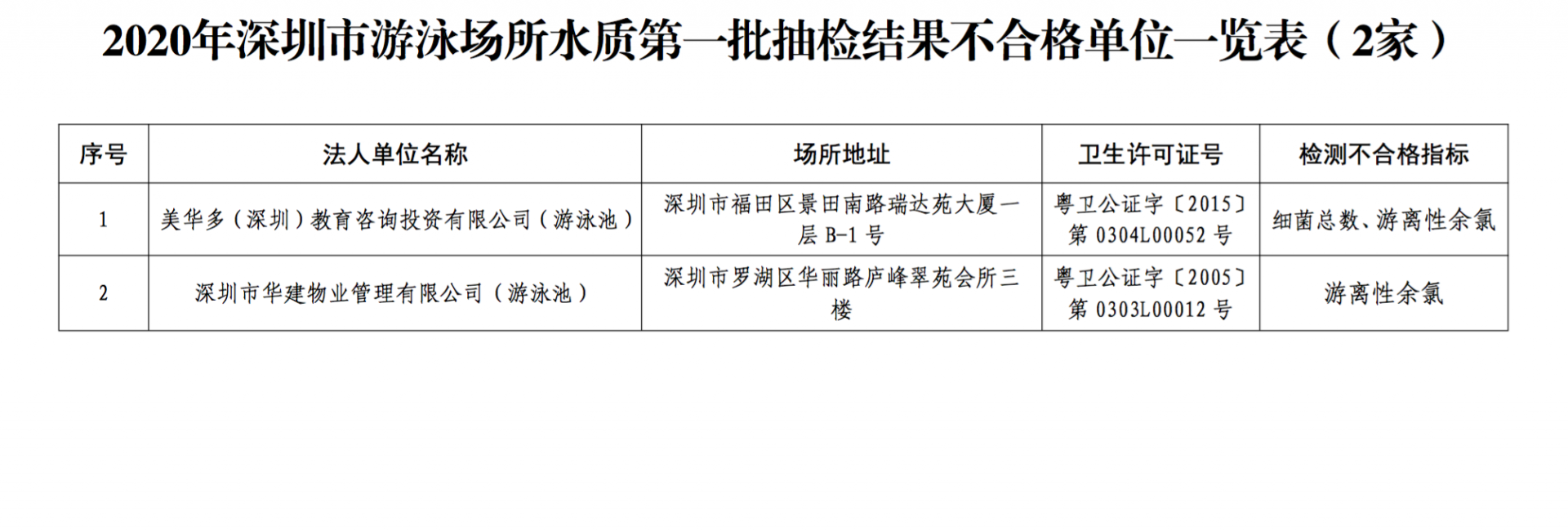 原標(biāo)題 游泳去?深圳第一批游泳場所水質(zhì)抽檢結(jié)果:這2家不合格