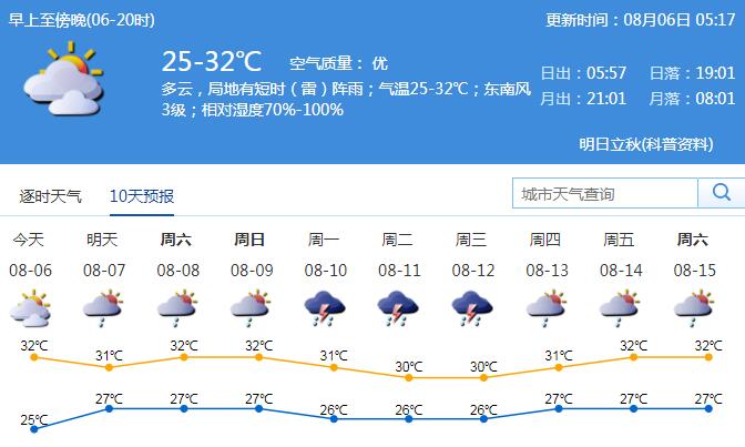 見(jiàn)圳客戶端·深圳新聞網(wǎng)2020年8月6日訊 近幾天的暴雨令深圳炎熱天氣有所緩解,8月6日起,暴雨將暫告一段落。據(jù)市氣象臺(tái)預(yù)測(cè),未來(lái)4天陽(yáng)光增多,氣溫上升,天氣悶熱。其中,6日有(雷)陣雨,陽(yáng)光增多,氣溫26℃~32℃;7日至9日多云間晴天,有短時(shí)陣雨,天氣悶熱;10日至12日降雨增多,有陣雨或雷陣雨,部分時(shí)間雨勢(shì)較大。