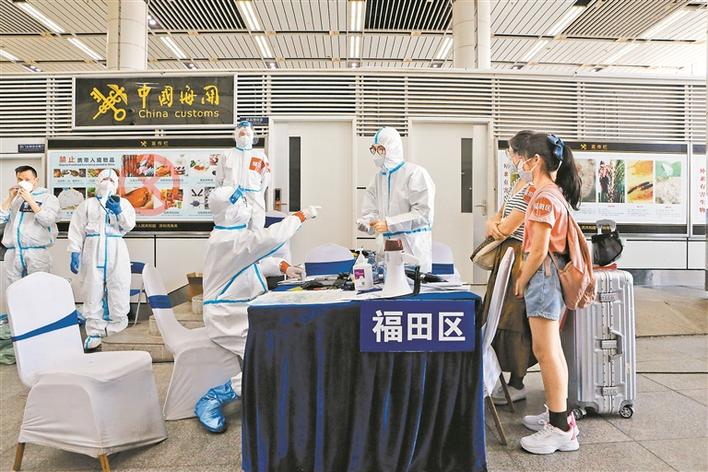 深圳灣口岸,按規(guī)定需要集中隔離醫(yī)學(xué)觀察的入境旅客在工作人員的帶領(lǐng)下分區(qū)搭乘巴士前往隔離點。(來源:深圳特區(qū)報)