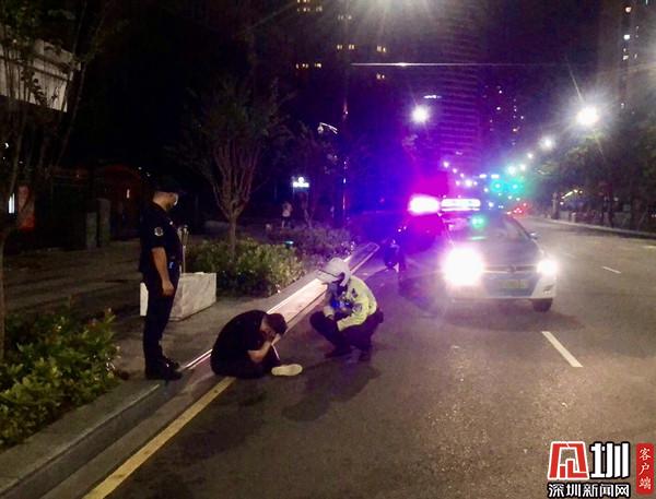 近日晚,羅湖交警總臺接到報(bào)警,稱在解放路有一名男子走在機(jī)動車道上來回徘徊,情況十分危險(xiǎn)。接到警情后,羅湖鐵騎黎江濤、胡洋迅速趕往現(xiàn)場。