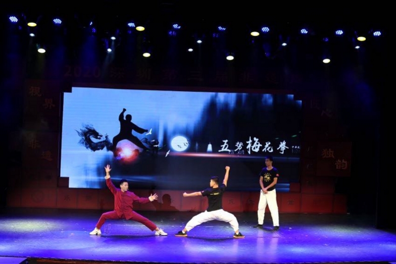 開幕式伊始,羅湖區(qū)第六批非物質文化遺產代表性項目現(xiàn)場授牌。自此,《五勢梅花拳》《鄭氏金銀細工制作技藝》《王氏面塑》《楊氏中國結》《聶氏麥稈畫》《盆景藝術》《萃華金銀制品(花絲鑲嵌與鏨刻)工藝》等7項傳統(tǒng)藝術,成為羅湖區(qū)新一批非遺項目。