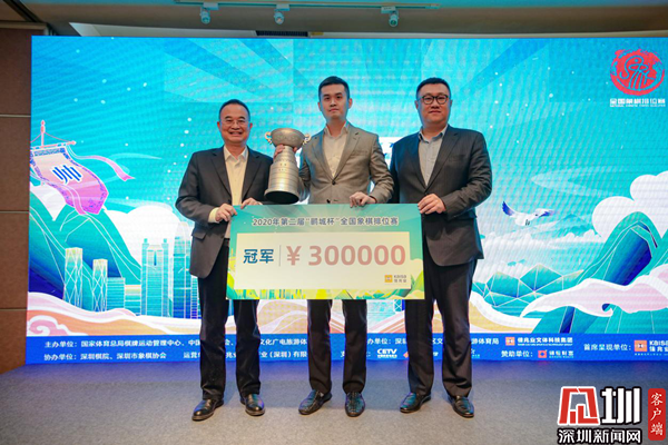 薛江與舒立共同為趙鑫鑫頒發(fā)獎(jiǎng)牌與賽事獎(jiǎng)金。趙鑫鑫在發(fā)表賽后感言時(shí)說道,今年疫情的大背景下賽事少,“鵬城杯”辦得非常好。他也表示,在一年的最后一天下棋對(duì)弈非常難得,希望明年再進(jìn)一步。