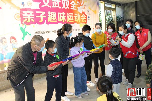 見圳客戶端·深圳新聞網(wǎng)2月1日訊(記者 劉嘉敏 通訊員 楊紀(jì)歐)今年過年不回家,要玩就在社區(qū)玩?!耙蛉攵础薄靶◎蝌秸覌寢尅薄傲璨ㄎ⒉健薄皩殞氈嘎贰边@些又好聽又好玩的游戲,是羅湖區(qū)桂園街道老圍社區(qū)黨群服務(wù)中心的社工為社區(qū)居民精心準(zhǔn)備的。1月30日上午,社區(qū)為鼓勵社區(qū)居民留深過年,專門開展了一場“文武雙全”親子趣味運動會,吸引了眾多小朋友及其家長,12對親子來到現(xiàn)場。