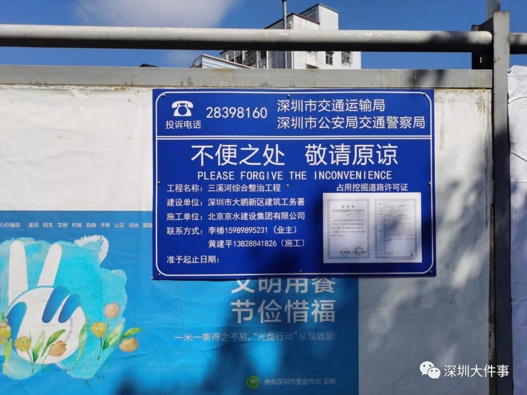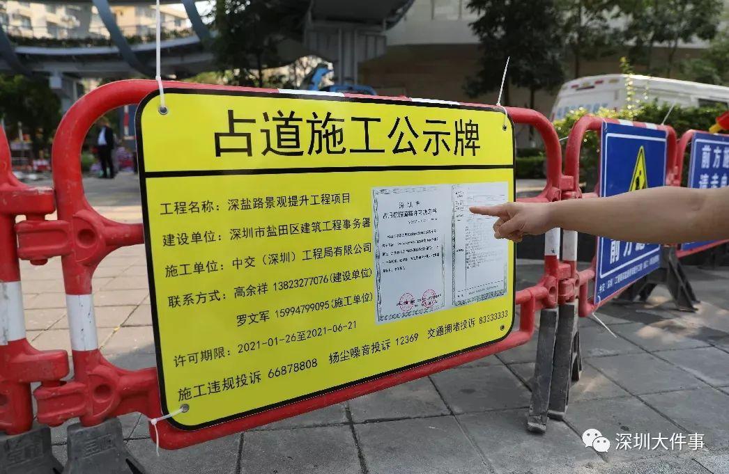3月9日,我們在鹽田區(qū)卓越榮津瀚海灣名庭施工現(xiàn)場看到,圍欄外每隔50米就張貼了最新版的占道施工公示牌,且在便于行人查閱的顯眼位置。