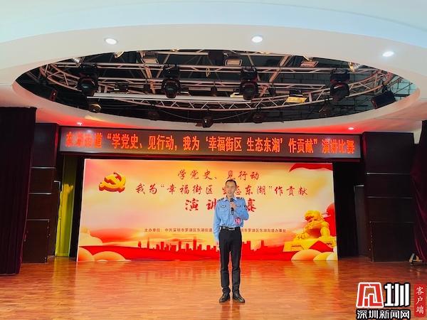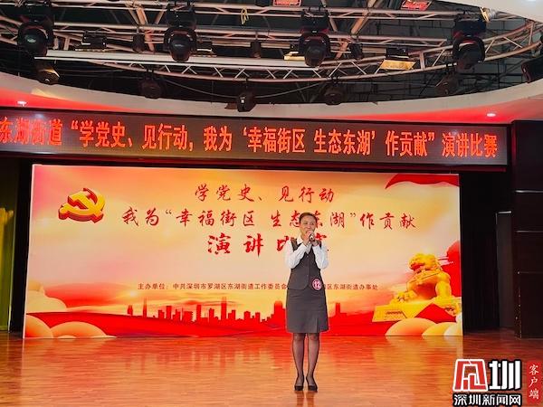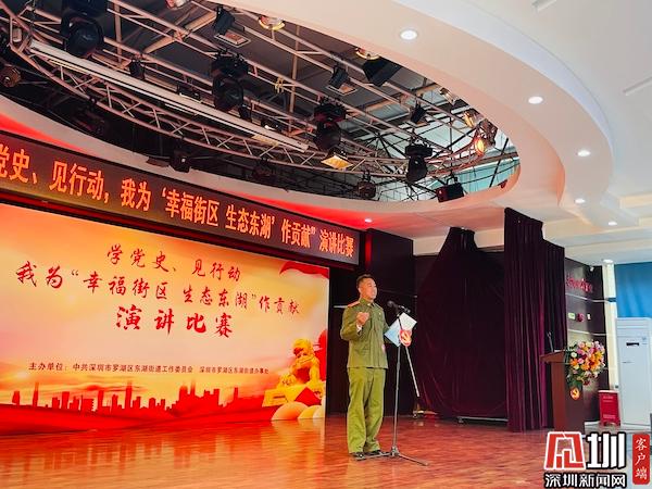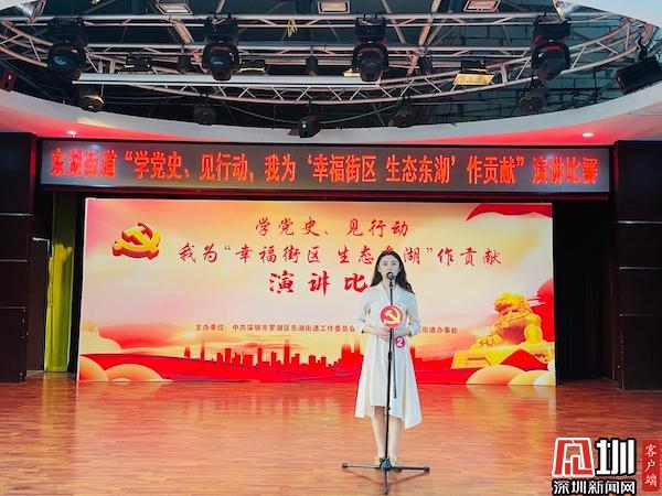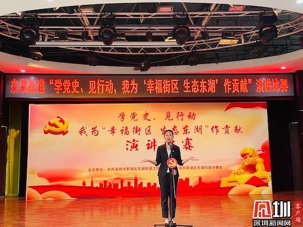 見圳客戶端·深圳新聞網(wǎng)3月13日訊(記者 彭桂紅 實(shí)習(xí)生 覃鈺清 通訊員 鄒楊 魏官明)“2021年是中國(guó)共產(chǎn)黨成立100周年,是羅湖區(qū)奮力開啟‘灣區(qū)樞紐、萬(wàn)象羅湖‘建設(shè)新征程的第一年,也是我們街道建設(shè)‘幸福街區(qū) 生態(tài)東湖’的開篇之年……”3月12日下午,東湖街道舉辦以“學(xué)黨史、見行動(dòng),我為‘幸福街區(qū) 生態(tài)東湖’作貢獻(xiàn)”為主題的演講比賽。