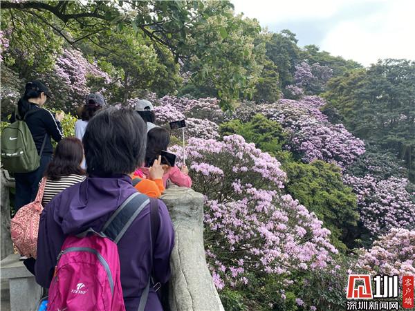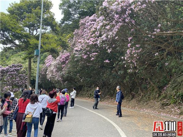 “大家平時有沒有來爬過梧桐山呢?你們知道梧桐山的最高峰是多少嗎?在梧桐山一共種植了多少毛棉杜鵑呢?”初入梧桐山,醫(yī)護人員們在游覽車上看著一路盛放的杜鵑,導賞員在旁向大家介紹梧桐山風景區(qū)的特色和花會盛況。據(jù)了解,3月18日至4月6日是深圳市梧桐山第六屆毛棉杜鵑花會,為進一步落實關(guān)愛抗疫醫(yī)護人員,羅湖面向抗疫一線醫(yī)護人員開設(shè)專場導賞,由梧桐山優(yōu)秀導賞員提供自然導賞,領(lǐng)略景區(qū)風光、認識沿途植物等,讓守在抗疫一線的白衣戰(zhàn)士領(lǐng)略最美的春光。