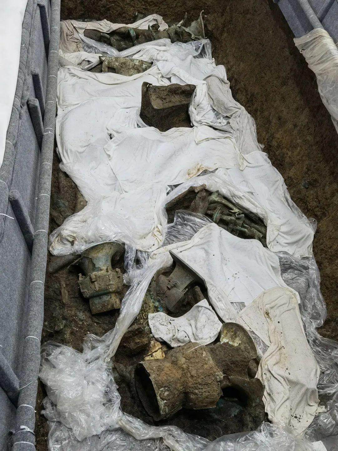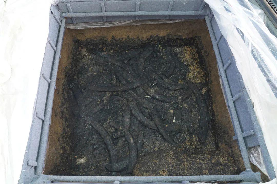 記者看到,在考古發(fā)掘現(xiàn)場(chǎng)設(shè)有考古實(shí)驗(yàn)室,此舉屬于首創(chuàng),實(shí)現(xiàn)考古出土文物與文物保護(hù)無縫對(duì)接。