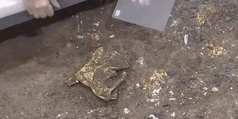 目前,三星堆遺址考古工作正在進(jìn)行中,新發(fā)現(xiàn)的六個(gè)“祭祀坑”已發(fā)掘至器物層,出土金面具殘片、鳥型金飾片、金箔、眼部有彩繪銅頭像、巨青銅面具、青銅神樹、象牙、精美牙雕殘件、玉琮、玉石器等重要文物。