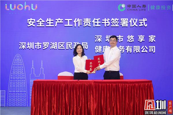 在開業(yè)儀式上,羅湖區(qū)民政局與國壽·悠享家健康護(hù)老中心簽訂了安全生產(chǎn)、消防工作責(zé)任書,為保障入住長者安全、關(guān)注長者需求層層壓實安全責(zé)任。