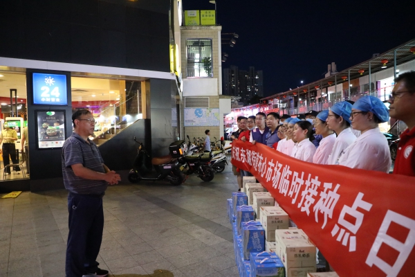 “大家辛苦了,感謝大家的辛勤付出!”在布心市場接種點,程時菊首先向全體工作人員致以誠摯的感謝,并叮囑他們要注意勞逸結(jié)合,做好自身防護(hù)。他強(qiáng)調(diào)全體工作人員面對艱苦的工作環(huán)境,沒有絲毫退縮,努力克服種種困難,始終以飽滿的熱情、昂揚(yáng)的斗志,堅守崗位、加班加點、辛勤工作,每天圓滿完成了新冠疫苗接種清零任務(wù)。目前深圳疫情防控形勢嚴(yán)峻,希望大家繼續(xù)發(fā)揚(yáng)攻堅克難、甘于奉獻(xiàn)的精神,全力加快新冠疫苗接種速度,為人民群眾的生命健康筑起堅實屏障。