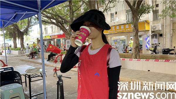 “目前全區(qū)大概有1.1萬名工作人員奮戰(zhàn)在社區(qū)、驛站防疫一線,他們無懼酷暑風(fēng)雨堅守崗位,用汗水為疫情防控構(gòu)筑堅實堡壘,羅湖區(qū)婦聯(lián)代表羅湖區(qū)社區(qū)小區(qū)組,積極聯(lián)系愛心企業(yè)瀾滄古茶集團,送上一杯陳皮茶,感謝他們的無私奉獻,也希望他們保護好自己。”黃毓瓊對記者說。