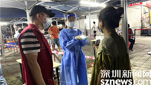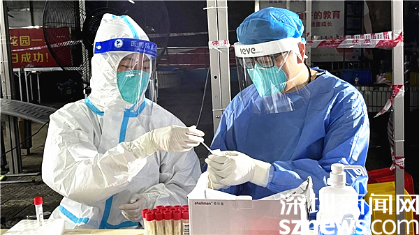 連日來,在羅湖區(qū)各大核酸檢測(cè)點(diǎn),醫(yī)護(hù)人員頂著烈日驕陽,身著密閉防護(hù)服,戴著隔離面罩,全副武裝奮戰(zhàn)在一線為市民進(jìn)行核酸檢測(cè)。