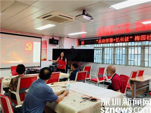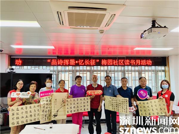 讀特客戶端·深圳新聞網(wǎng)2021年9月9日訊(記者 郭含笑 通訊員 梁嘉麗/文 張亮亮/圖)今年是中國(guó)共產(chǎn)黨成立100周年,在第二十二屆深圳讀書(shū)月來(lái)臨之際,9月9日下午,深圳市羅湖區(qū)清水河街道梅園社區(qū)黨委聯(lián)合梅園社區(qū)婦聯(lián)、梅園社區(qū)長(zhǎng)青老齡大學(xué)、深圳市東西方社工服務(wù)社駐梅園社區(qū)黨群服務(wù)中心社工,在紅崗大廈二樓多功能室開(kāi)展“品詩(shī)揮墨?憶長(zhǎng)征”讀書(shū)月活動(dòng)。