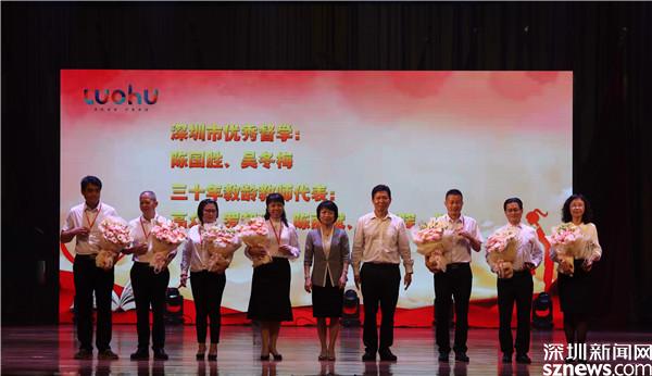 會(huì)上,羅湖區(qū)委書記羅育德,深圳市教育局黨組成員、副局長王水發(fā),羅湖區(qū)委副書記、區(qū)人民政府黨組書記、代區(qū)長范德繁等領(lǐng)導(dǎo)出席大會(huì)并為深圳市十佳校長、2021年市級年度教師、2021年區(qū)幼兒園年度教師,三十年教齡教師、功勛園丁、教育先進(jìn)單位、先進(jìn)教育工作者、優(yōu)秀班主任和優(yōu)秀教師等代表頒獎(jiǎng)。