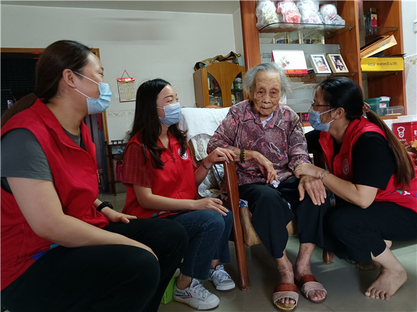 在鐘錦云老人家里,85歲的鐘阿姨挨個(gè)跟年輕的社工握手,一口一個(gè)乖女,笑著說(shuō):“你們真乖啊,又來(lái)看鐘姨了,謝謝你們啊。”這兩年,社工經(jīng)常登門(mén)看望,她總是喜歡叫社工乖女,與社工談笑間親如家人。社工轉(zhuǎn)達(dá)了社區(qū)黨委對(duì)老人的問(wèn)候,并祝老人中秋快樂(lè)。分別時(shí),老人不舍地將大家送到樓梯間,一再叮囑有空就來(lái)玩。