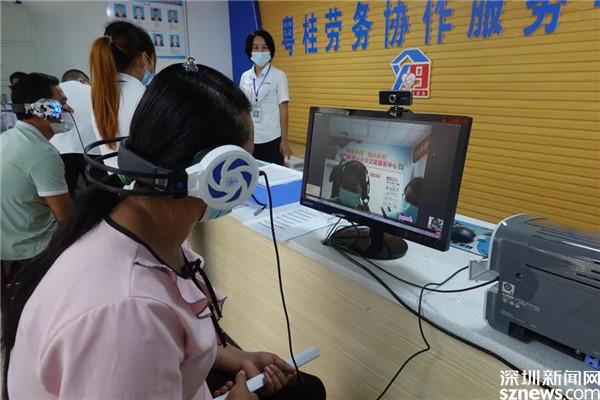 在粵桂勞務(wù)協(xié)作服務(wù)中心,一場(chǎng)兩地遠(yuǎn)程視頻招聘會(huì)正在舉行,不少百姓拿著心儀的崗位介紹在等候面試。服務(wù)中心前臺(tái)放置著四臺(tái)電腦,參加面試的人坐在電腦前連接視頻,視頻的另一端,是來自羅湖區(qū)的企業(yè)。這樣的視頻招聘會(huì),定期在服務(wù)中心舉行。
