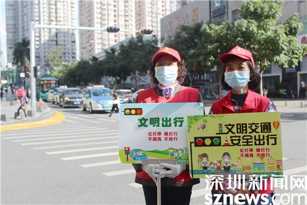 讀特客戶端·深圳新聞網(wǎng)2021年11月9日訊(記者 劉嘉敏 通訊員 楊紀(jì)歐)11月8日早晨,深圳明顯降溫,出行的市民紛紛穿上了厚衣御寒。身穿紅馬甲的義工,手舉“文明出行”的指示牌,在四面迎風(fēng)的路口執(zhí)勤,勸導(dǎo)市民文明出行,營造安全有序暢通的交通環(huán)境,維護(hù)相互禮讓的文明社會風(fēng)尚。他們不畏寒風(fēng),積極投身文明城市創(chuàng)建,踐行“奉獻(xiàn)、有愛、互助、進(jìn)步”的志愿服務(wù)精神,讓志愿服務(wù)之火,點亮城市文明之光。他們是羅湖區(qū)桂園街道老圍社區(qū)創(chuàng)文小分隊的志愿者,同時,他們也是萬象城U站的義工。