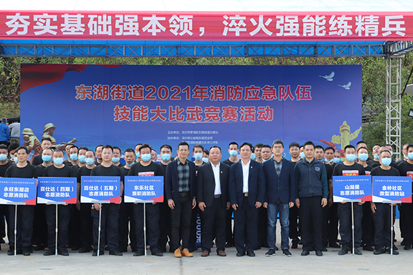 讀特客戶端·深圳新聞網(wǎng)2021年11月25日訊(記者 邱婕 通訊員 范漢林)為夯實(shí)幸福街區(qū),生態(tài)東湖基礎(chǔ),營(yíng)造安全有序的居住環(huán)境,切實(shí)增強(qiáng)轄區(qū)居民群眾的獲得感、幸福感和安全感,11月25日,東湖街道在翠湖公園廣場(chǎng)舉行“2021年消防應(yīng)急隊(duì)伍技能大比武競(jìng)賽活動(dòng)”。區(qū)消防救援大隊(duì)副大隊(duì)長(zhǎng)胡巒,街道黨工委副書記、人大工委主任謝統(tǒng)敏,街道黨工委委員、辦事處副主任、應(yīng)急管理辦主任方海峰,街道黨工委委員、城市建設(shè)辦主任楊曉明,街道辦事處副主任、綜合行政執(zhí)法辦主任李旭,東湖派出所副所長(zhǎng)張金偉等領(lǐng)導(dǎo)和街道相關(guān)業(yè)務(wù)部門、社區(qū)工作站、各物業(yè)管理小區(qū)及兼職消防隊(duì)伍等相關(guān)人員參加了活動(dòng)。街道轄區(qū)各物業(yè)管理單位、村股份公司及轄區(qū)重點(diǎn)企業(yè)26支應(yīng)急消防隊(duì)伍,共230余名隊(duì)員參加了比賽。
