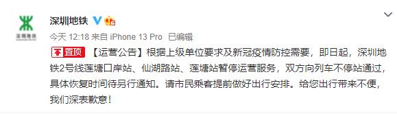 仙湖路站、蓮塘站暫停運(yùn)營(yíng)服務(wù)