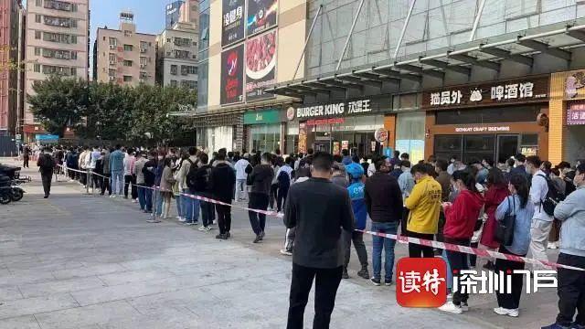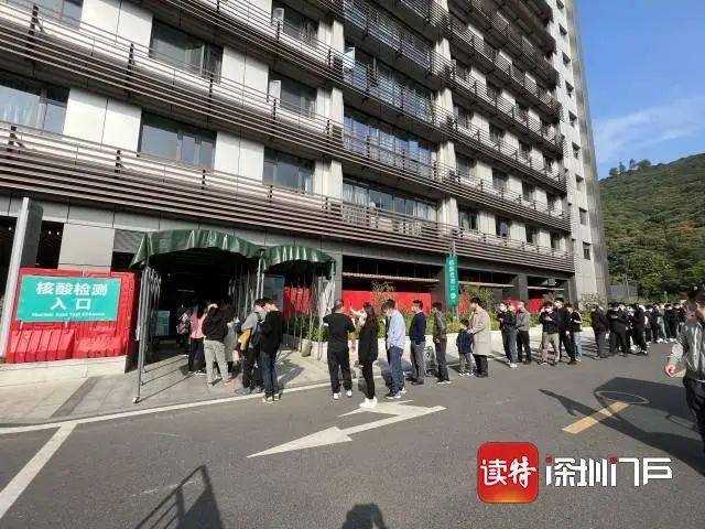 ▲坂田星河銀湖谷樓下也排起長(zhǎng)長(zhǎng)的核酸檢測(cè)隊(duì)伍,除了本地居民,人群里還有附近工地的建筑行業(yè)從業(yè)者、外賣(mài)小哥等。