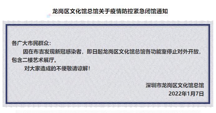 1月7日,深圳市龍崗區(qū)圖書(shū)館發(fā)布通知稱(chēng),因疫情防控工作需要,為保障市民讀者健康安全,經(jīng)研究決定,區(qū)圖書(shū)館在布吉、坂田和吉華三個(gè)街道的所有分館,自2022年1月7日起臨時(shí)閉館,暫停到館讀者服務(wù)和各項(xiàng)活動(dòng),進(jìn)行衛(wèi)生消殺、內(nèi)務(wù)整理等,恢復(fù)開(kāi)館時(shí)間另行通知。