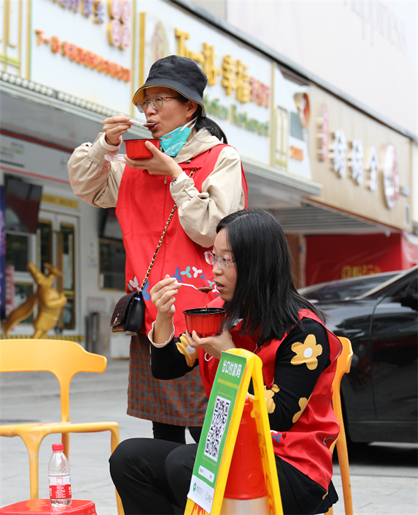 “收到臘八粥很暖心,也很好吃,非常感謝?!贝渲窠值浪惼瑓^(qū)防疫工作者們一邊津津有味吃著,一邊對(duì)記者說(shuō)道:“我們會(huì)一如既往地堅(jiān)守崗位,為市民筑牢疫情防控的‘銅墻鐵壁’?!?/p>