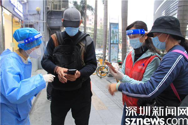 “楊妹,我來了,還帶來了一個人?!?3日晚,正在羅湖區(qū)桂園街道老圍社區(qū)禧程酒店核酸檢測點忙碌的社工楊女士,接到志愿者溫寶珍的電話。溫寶珍從“0107疫情”開始以來,每天都在核酸檢測點協(xié)助核酸檢測,這晚她把自己的兒媳婦吳永霞也帶來了。“婆婆剛從其他社區(qū)的核酸檢測點做完義工回來,聽說老圍社區(qū)需要人,放下飯碗就來了。婆婆這么大年紀了還沖在前面,我做兒媳婦的,怎么也要向婆婆學習啊?!眳怯老紝ι绻ふf?!皯摰膽摰?,疫情當前,每個人都有義務出來與病毒作戰(zhàn),光是靠社區(qū)工作者不行,他們太累了?!睖貙氄溥呎f邊幫兒媳穿好義工服,把粵核酸的二維碼交給兒媳,并教兒媳如何在手機上查驗。