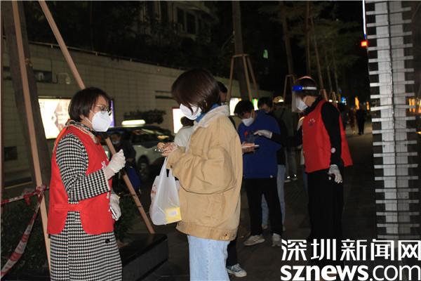 1月13日晚,姐妹倆下了班,雙雙從崗廈趕到老圍社區(qū),協(xié)助核酸檢測。姐妹倆一個站在出口,給采樣完畢的人貼上“已測核酸的”愛心貼;一個站在入口,查驗行程碼。有姐妹倆的同心協(xié)力,愛心堅守,核酸檢測點秩序井然。姐姐佘娜還在朋友圈上呼吁大家加入志愿者行列,投入抗疫,共同向病毒宣戰(zhàn)。