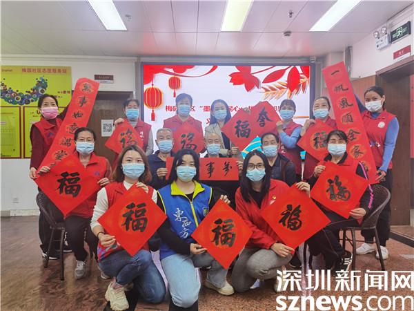 讀特客戶端·深圳新聞網(wǎng)2022年1月26日訊(記者 郭含笑 通訊員 李珍鳳)“無(wú)聯(lián)不成春,有聯(lián)春更濃”。春節(jié)臨近,為弘揚(yáng)和傳承中華優(yōu)秀傳統(tǒng)文化,1月26日,深圳市羅湖區(qū)清水河街道梅園社區(qū)黨委、深圳市東西方社工服務(wù)社駐梅園社區(qū)黨群服務(wù)中心在梅園社區(qū)新時(shí)代文明實(shí)踐站開(kāi)展了送春聯(lián)活動(dòng),邀請(qǐng)社區(qū)4位書(shū)法愛(ài)好者現(xiàn)場(chǎng)為居民寫(xiě)春聯(lián)、送祝福。
