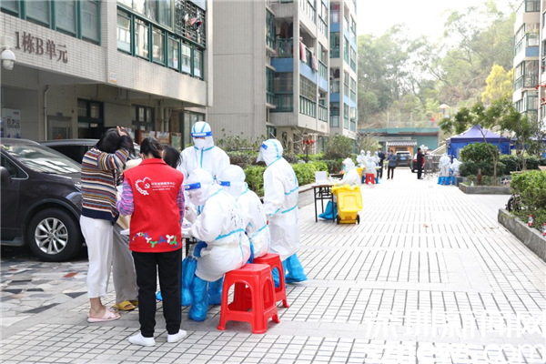 2月28日早上,蓮塘街道各社區(qū)集結(jié)工作人員支援長嶺社區(qū),每個(gè)樓棟由長嶺社區(qū)黨委委員“一對(duì)一”掛點(diǎn),幫助居民采購配送物資,協(xié)助核酸檢測(cè)排查、流調(diào)排查、生活垃圾清理等,全力保障小區(qū)住戶日常生活需求。據(jù)蓮塘街道工作人員介紹,為保證核酸采樣快速、高效,長嶺社區(qū)每棟樓樓下都安排了一個(gè)核酸采樣點(diǎn),助力核酸檢測(cè)采樣工作有序開展。