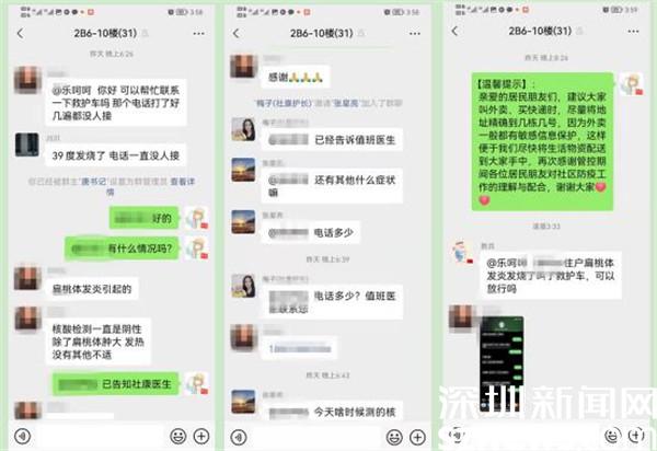“疫情發(fā)生以來,長嶺社區(qū)全體工作人員通宵達(dá)旦全力抗疫,力爭跑在疫情前,第一時(shí)間按樓棟、分單元建立8個(gè)居家隔離服務(wù)微信群,社區(qū)工作人員和志愿者進(jìn)入每個(gè)單元群收集居民的各種服務(wù)需要,并及時(shí)回復(fù)。之前,有工作人員在給外賣消毒中發(fā)現(xiàn)有感冒消炎藥物,立即打電話咨詢,得知有位居民出現(xiàn)扁桃體發(fā)炎引發(fā)高燒,隨及在居家隔離服務(wù)微信群請(qǐng)求支援,開通24小時(shí)專線服務(wù),讓居民能夠及時(shí)就醫(yī)”。