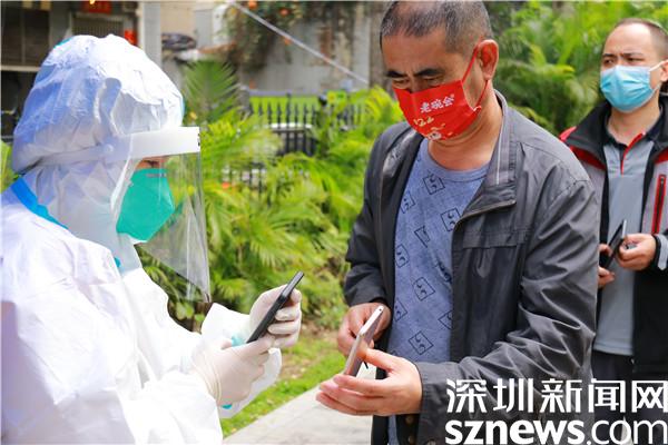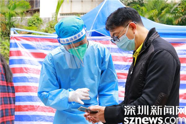 從2月17日開始,劉曉勇加入安保公司,被派到羅湖區(qū)東曉街道支援疫情防控工作,至今已有13天,13天里,他跟隨隊伍轉(zhuǎn)遍了東曉街道各個核酸檢測點,從分流人群、維持秩序,到掃碼、引導(dǎo)居民操作、核酸檢測點布置、采樣結(jié)束收尾……對每個流程都了如指掌;13天里,他每天工作十幾個小時,從早上九點到晚上十點、十一點,只在中午輪班吃飯的時候有十幾分鐘休息時間。