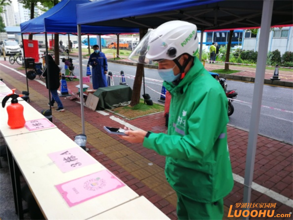小區(qū)自建的快遞外賣臨時存放點,是由物業(yè)與居民志愿者共同管理的,分揀員主要由物業(yè)人員和業(yè)主志愿者組成。分揀員穿上防護服與快遞、外賣小哥在郵寄快遞消毒交接區(qū)進行交接,避免了所有人員與快遞、外賣小哥直接接觸,保持了有效的安全間隔。在臨時存放點可以看到由志愿者擔當著分揀員,他們有條不紊、熟練地將快遞對應(yīng)放于相應(yīng)樓棟的貨架上。
