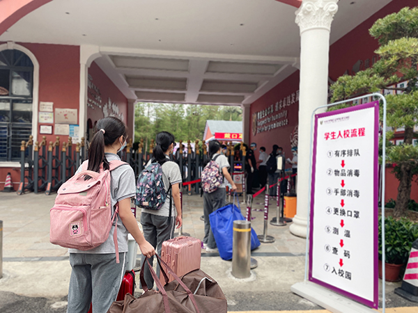 讀特客戶端·深圳新聞網(wǎng)2022年4月11日訊(記者 吳艷 通訊員 魏次開)今日上午7點左右,羅湖區(qū)諾思外語實驗學(xué)校大門外,帶著濃濃返校期盼的學(xué)生和家長們早已提前等候在學(xué)校門口,左手書包右手行李,自覺列隊等待核驗,開啟了初三學(xué)生春季學(xué)期返校的序幕。